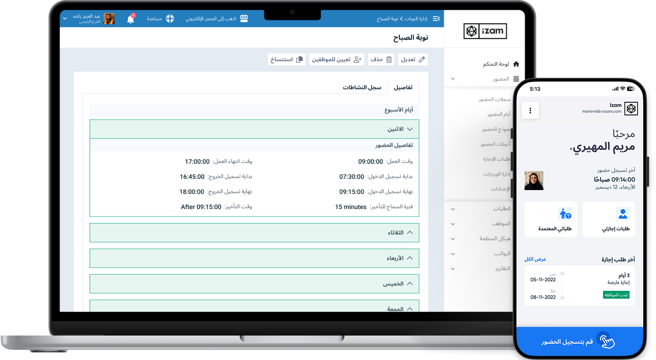 ضع سياسات الإجازات في منشأتك واضبط شروط الموافقة عليها، واستعرض التقارير التفصيلية لسجلات حضور الموظفين.