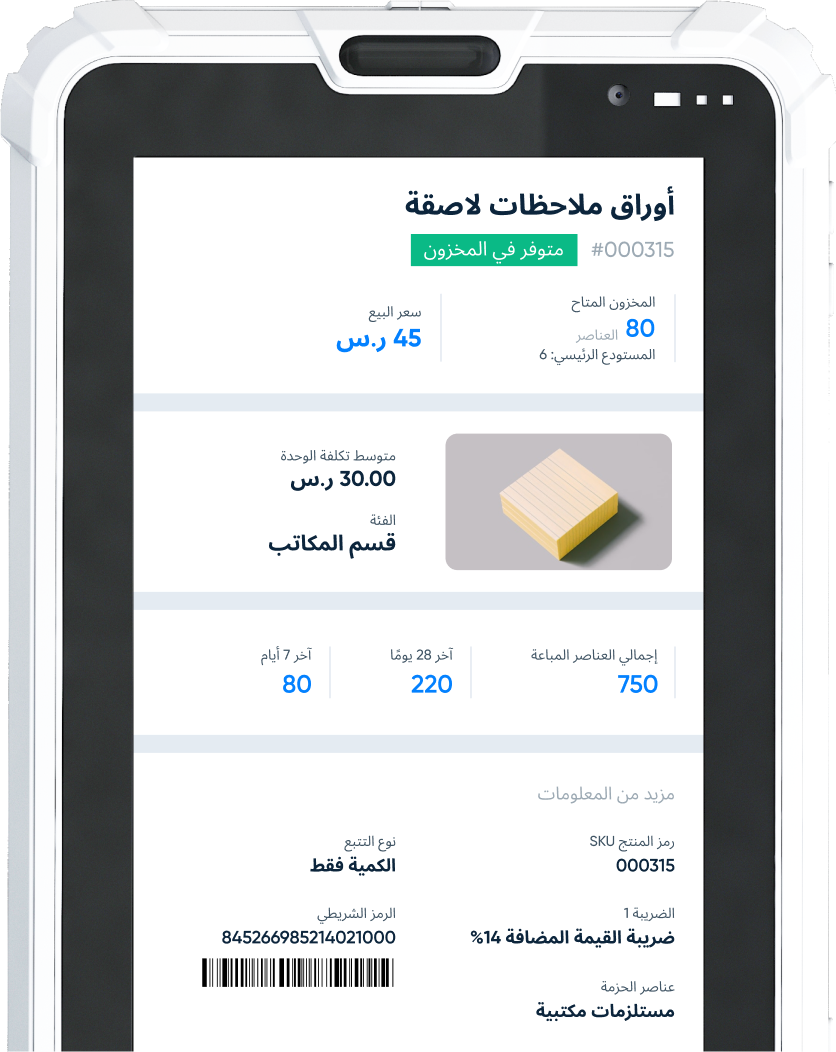 ضع كل مجموعة متشابهة من المستلزمات المكتبية كالأقلام أو الكتب الخارجية أو الكشاكيل في صنف مستقل وميزهم من خلال الوسوم بحسب الألوان والأحجام واسمح للنظام بتنبيهك عند انخفاض كمية المستودع من صنف ما عن الحد المخزوني المريح. قم بعمليات الجرد وتأكد من مطابقة الكميات الفعلية بكميات المنتج على النظام وتتبع منتجاتك بأرقام التسلسل أو الكميات وأدر صرف وإضافة المنتجات من خلال الأذون المخزنية.