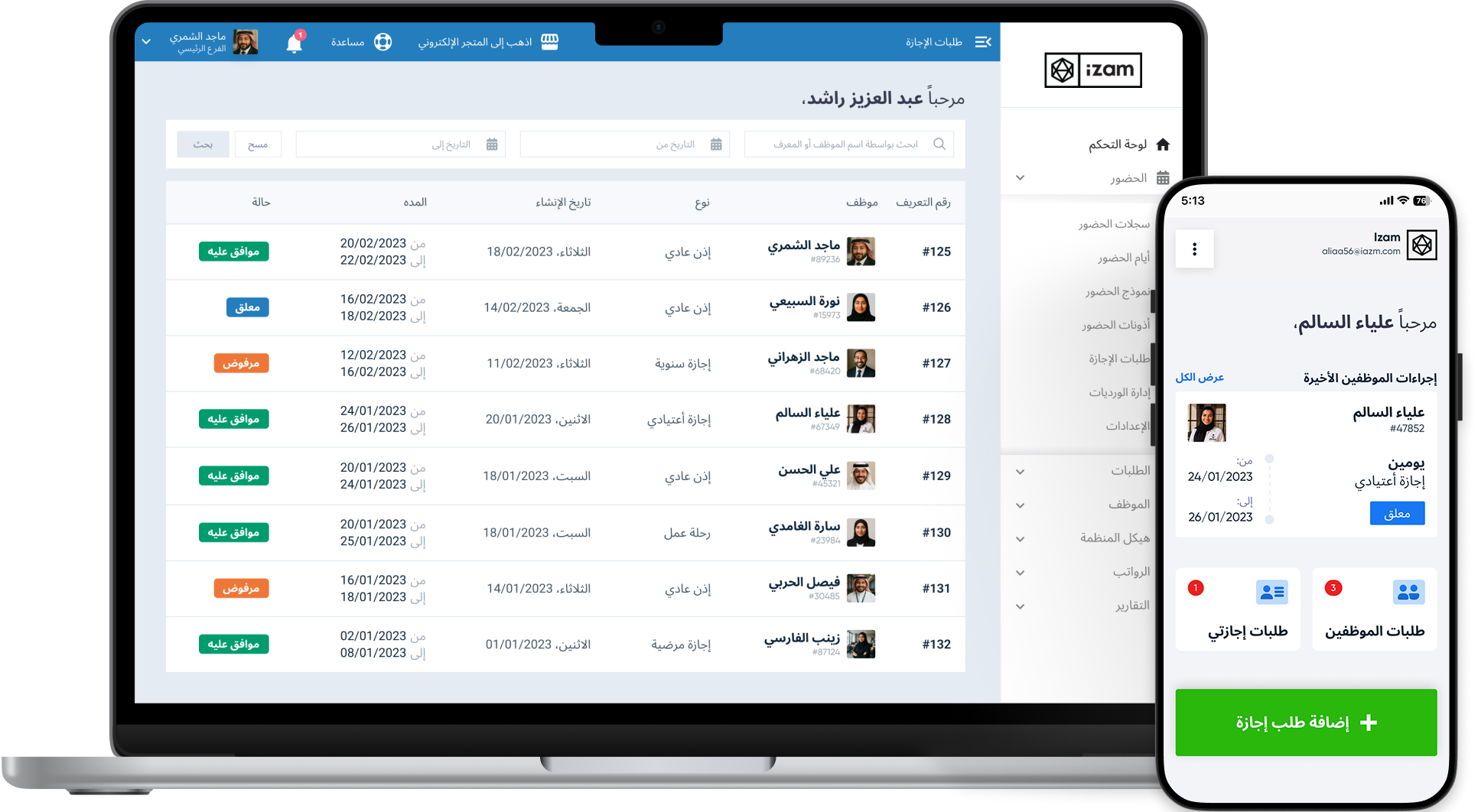 اسمح لموظفيك بمتابعة إجازاتهم وحضورهم وطلباتهم المختلفة بأنفسهم عبر التطبيق، مع تقليل الاعتماد على قسم الموارد البشرية.