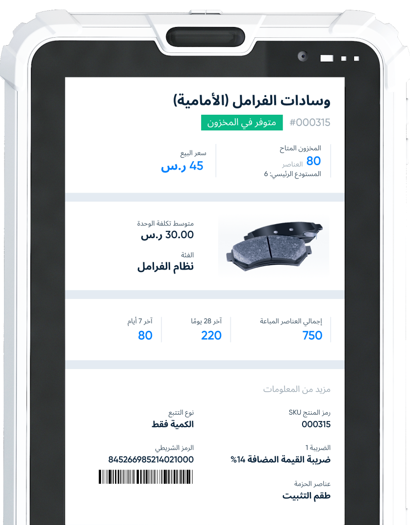 استكشف إدارة الموارد البشرية ابدأ الاستخدام مجانًاساعدك دفترة على ترتيب مخزونك للوصول للقطعة التي تريد في أي وقت بسهولة، يمكنك إصدار ملصق باركود لكل قطعة ولصقها عليها لإمكانية البحث عن بيانات هذه القطعة فيما بعد من خلال جهاز قارئ الباركود، كما لك أن تتّبع قطع الغيار بالرقم التسلسلي، ومن خلال وسوم التصنيفات تستطيع تمييز كل قطعة غيار في مخزنك وضمها ضمن مجموعة محددة من قطع غيار السيارات. بالإضافة لما سبق يسهل عليك مراقبة حركة المخزون وإصدار الإذون المخزنية بإضافة أو صرف قطع غيار السيارات.
