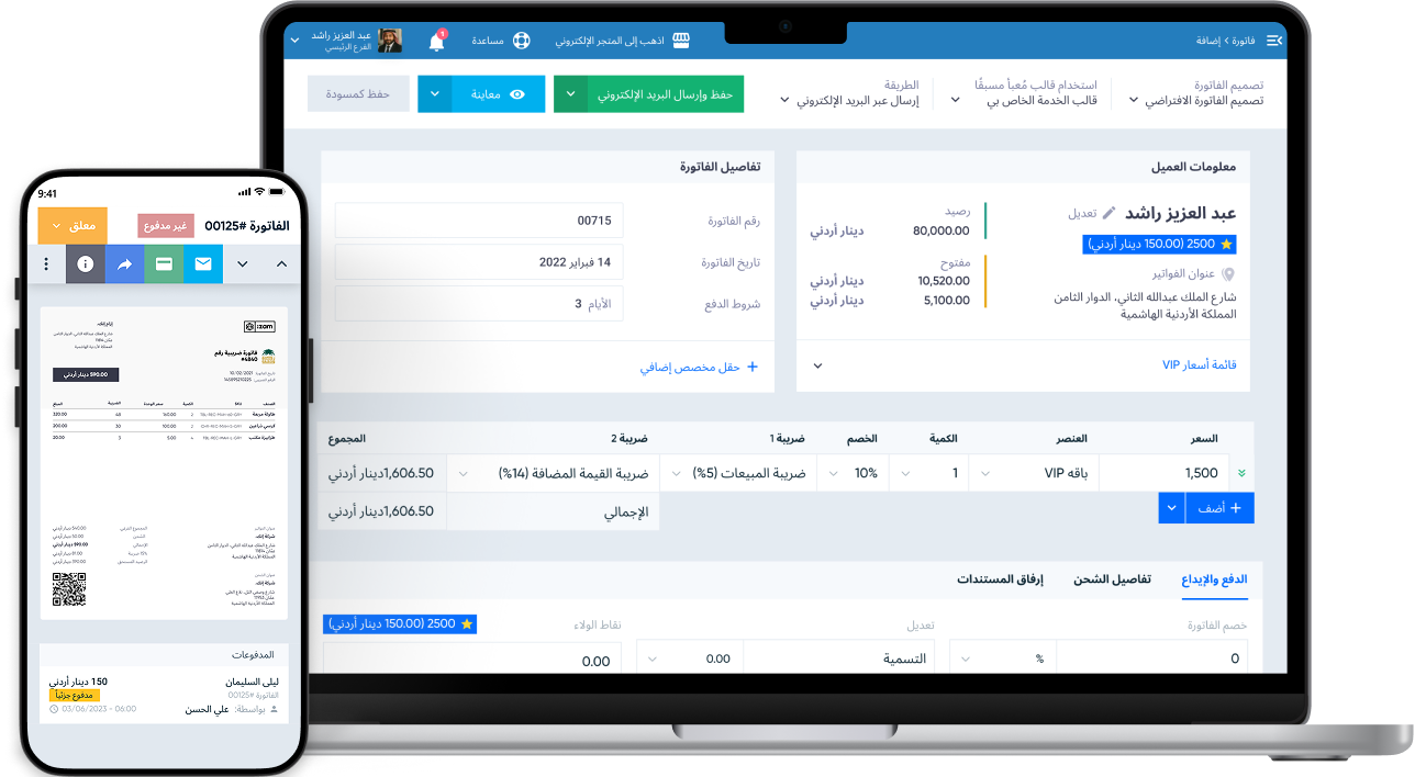 دفترة يخليك متصلًا بأعمالك أينما كنت. نظام سحابي يعمل على كل أجهزتك، في أي وقت وأي مكان، ومع تطبيق سطح المكتب تقدر تصدر فواتيرك حتى بدون إنترنت.