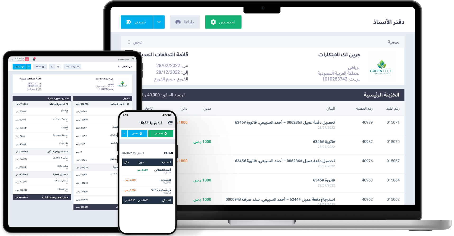 دفتـرة يدير فواتيرك، ومدفوعاتك، وحساباتك بدقة وفي وقت واحد.