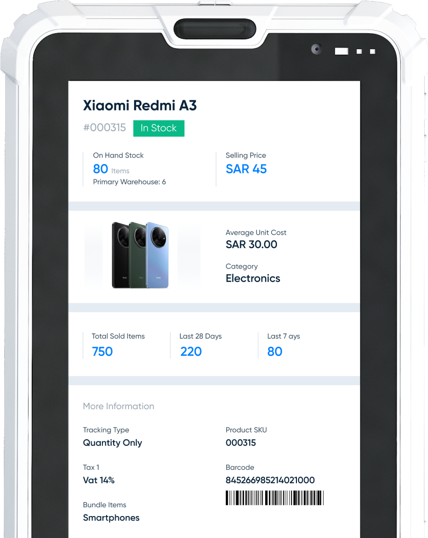 Manage your mobile store with Daftra business management software. Issue sales and purchase invoices, track product sales, and monitor salesperson performance and targets. Sell online with cloud POS integrated with barcode devices, track stock and inventory levels, and stay on top of business performance with advanced financial reporting.