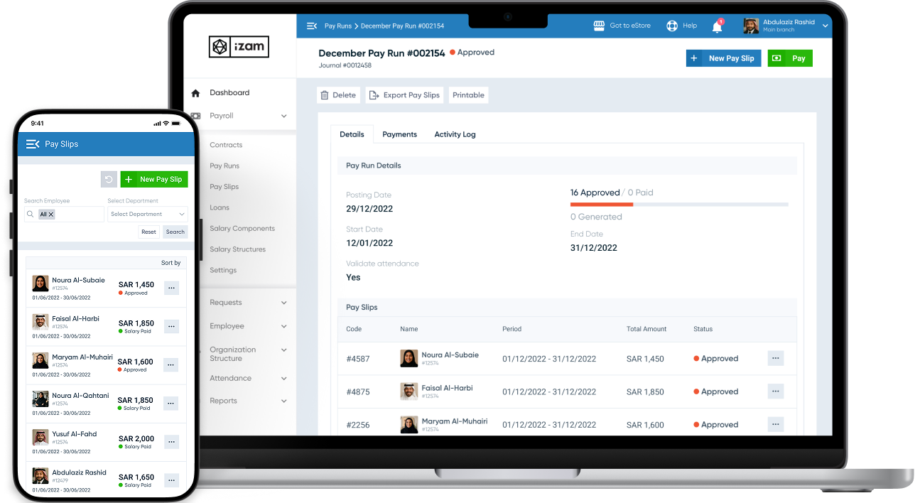 Daftra Payroll Management System spares SMEs routine payroll calculations, contract writing, and payslip creation by automating salary component structuring, contract management, and payslip generation against attendance and leave, job designation and level, and compliance requirements.