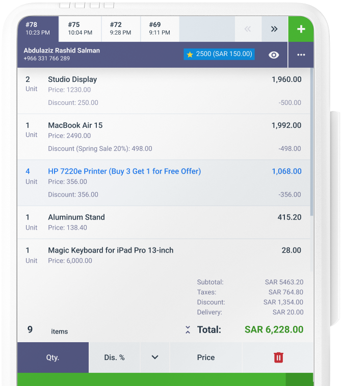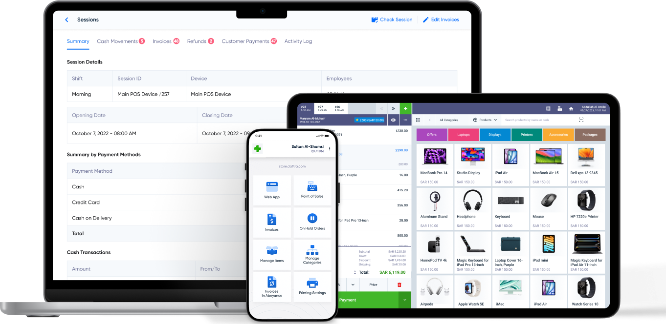 Have all online and in-store sales using units, barcodes, categories, and serial numbers. Use Daftra-compatible peripherals such as scales, barcode readers, cash registers, and printers. Experience full integration with Inventory, Accounting, CRM, and e-invoice compliance.