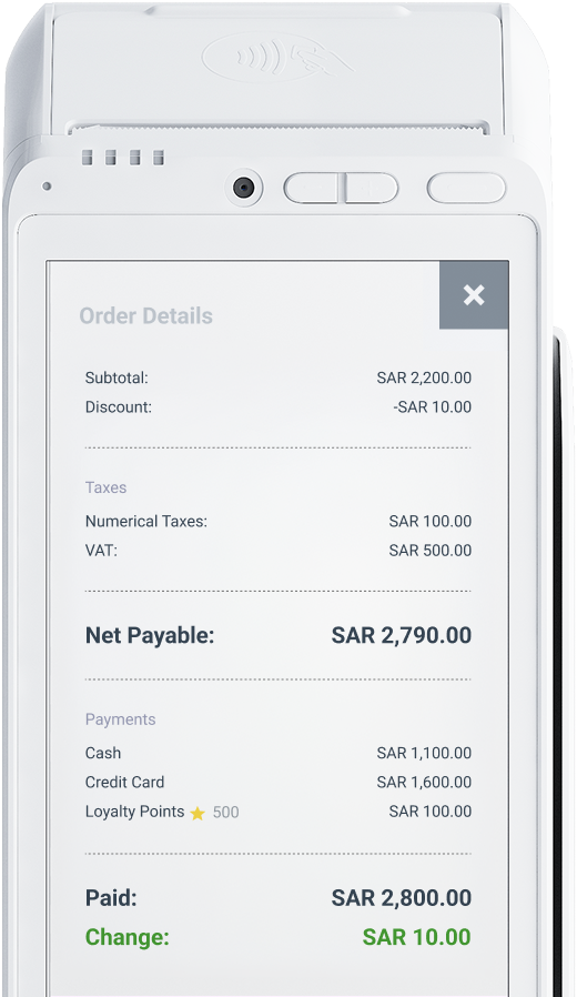 Track cloud-synced order and invoice history from multiple selling points, shift transactions, devices, per salesperson or group of salespersons.