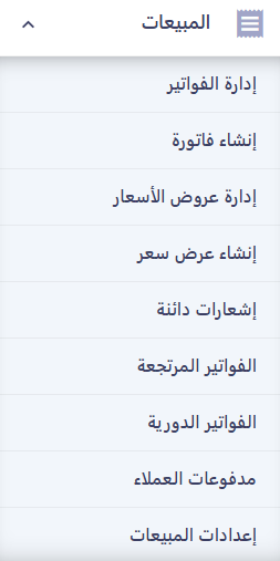 1- القائمة الرئيسية ثم الضغط على المبيعات، واختار "إدارة الفواتير".