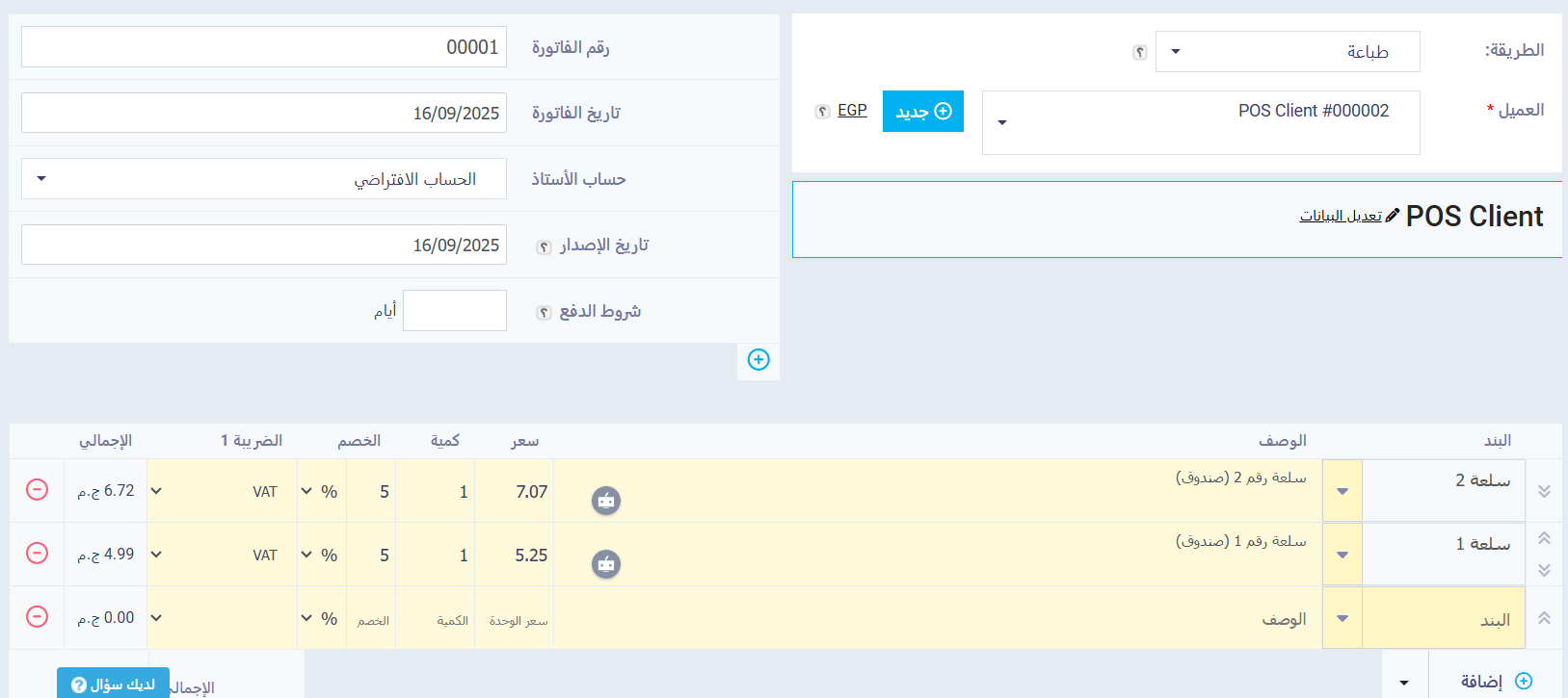 6- حفظ الفاتورة بالضغط على "حفظ".