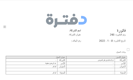 دفترة يوفر خيارات متقدمة لتخصيص الفاتورة حسب احتياجاتك: