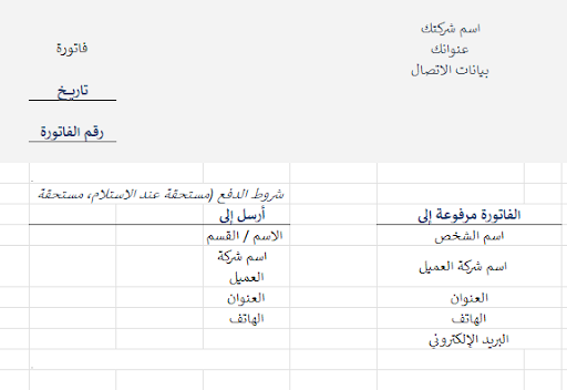 5- أضف ملاحظات أسفل الفاتورة مثل شروط الدفع أو تاريخ الاستحقاق.