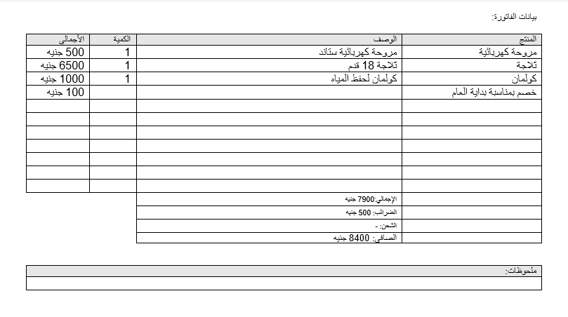 يمكنك تحميل نموذج فاتورة مبيعات جاهزة بكل البيانات